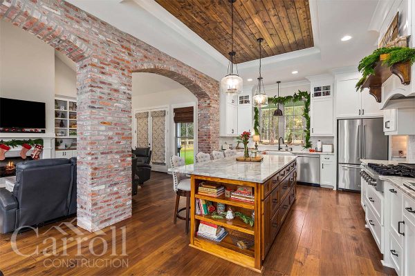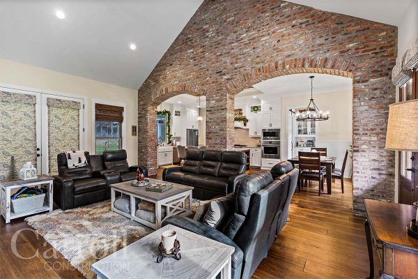 - Tallahassee brick arch and columns in the living room entering kitchen