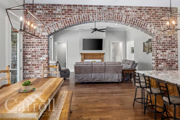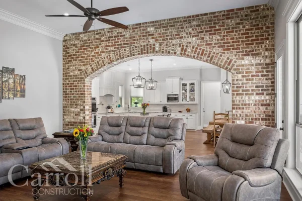 - Brick Arch Separating the Family Room from the Kitchen: Columbus Belle Grae with gray mortar