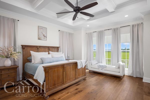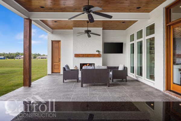 Our designer customized the selections process to their preferences. The Neckers upgraded key features including appliances, a more efficient HVAC system, full custom showers in guest and child bathrooms, and quality tile and wood flooring. Architectural details like coffered ceilings, rustic beams, and a feature wall with mouldings enhanced the home’s character. Lifestyle-driven additions included an outdoor kitchen, a large master closet with laundry pass-through, and a mud bench off the garage. Every plan revision was carefully tracked and preserved for transparency and accuracy.