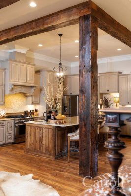 - Living room, foyer, kitchen and dining room openings have beautiful Reclaimed Pine Beams and Dirty Top Pine in locations where shown in the photos.