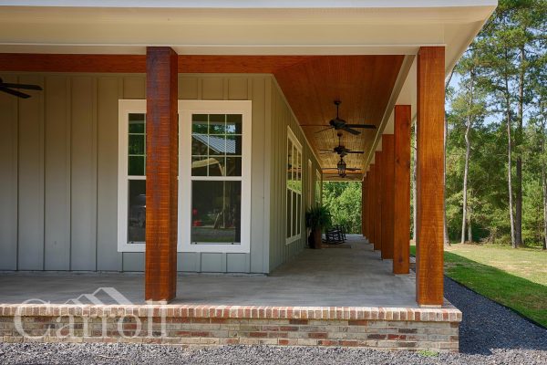 - Stained V Groove Nordic Spruce ceiling for the wrap around porch