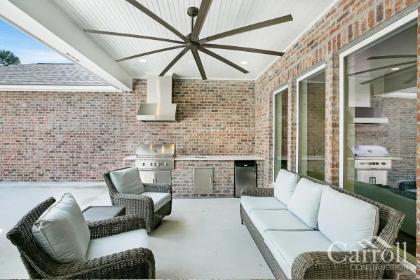 Our designer customized the selections process to their preferences. The Neckers upgraded key features including appliances, a more efficient HVAC system, full custom showers in guest and child bathrooms, and quality tile and wood flooring. Architectural details like coffered ceilings, rustic beams, and a feature wall with mouldings enhanced the home’s character. Lifestyle-driven additions included an outdoor kitchen, a large master closet with laundry pass-through, and a mud bench off the garage. Every plan revision was carefully tracked and preserved for transparency and accuracy.